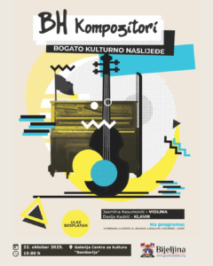 Galerija Centra za kulturu „Semberija“ u srijedu, 22. oktobra će postati mjesto muzičkog putovanja Bosnom i Hercegovinom, uz posredstvo Jasmine Kasumović i Darije Kadrić koje će na violini i klaviru izvesti djela bosansko-hercegovačkih kompozitora, ali i nekoliko popularnih sevdalinki, u jedinstvenom spoju klasične muzike i zvukova sevdaha.