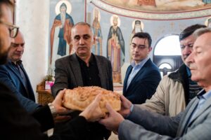 Nakon svečanog čina lomljenja kolača, sveštenstvo je poželjelo kompaniji „Orao“ i njenim radnicima da se još mnogo godina sjećaju lika i djela Svetog Longina, prvog oficira koji je poslije Hristovog stradanja skinuo vojnu uniformu i udaljio se od svijeta radi Boga.