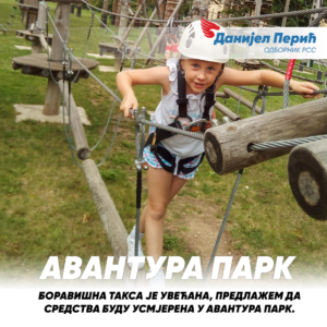 Grad Bijeljina je uvećao boravišnu taksu za domaće i straneturiste na 3 KM po noćenju i zbog toga smatram da većasredstva, koja će biti na raspolaganju Turističkoj organizaciji, treba upotrijebiti za direktno ulaganje u turizam i turističkekapacitete. S tim u vezi, predlažem da novac od povećanjaboravišne takse bude uložen u izgradnju Avantura parka nagradskom zemljištu u naselju Koviljuše – izjavio je odbornikRepubličke stranke Srpske Danijel Perić.
