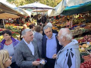 Dr Mikajlo Lazić, kandidat SNSD-a za gradonačelnika Bijeljine, danas je, zajedno sa kandidatima ove stranke za odbornike u Skupštini grada Bijeljina, prošetao ulicama grada i gradskom Zelenom pijacom, gdje su razgovarali sa građanima.