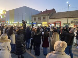 Građani Bijeljine zastali su večeras na Trgu kralja Petra I Karađorđevića stojeći u petnaestominutnoj ćutnji i simbolično odali počast žrtvama nesreće na željezničkoj stanici u Novom Sadu 1. novembra kada je u rušenju nadstrešnice poginulo 15 uglavnom mladih ljudi.