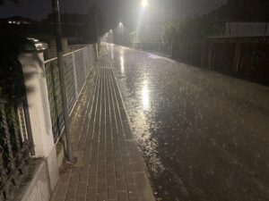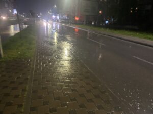 Svjetla ulične rasvjete samo dodatno naglašavaju dramatičnu sliku, dok kapljice kiše neumorno udaraju o asfalt, stvarajući osjećaj kao da “lije iz kabla”.