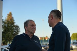 Član upravnog odbora i donator objekta, direktor kompanije Steko centar gospodin Milenko Stevanović, u društvu predsjednika upravnog odbora FK Radnik Nedeljka Ćorića, svečano je otvorio rad novog objekta.
