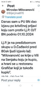 Član Predsjedništva SNSD-a Miroslav Milovanović objavio je danas na društvenoj mreži X da je dao izjavu u Policijskoj upravi Bijeljina po krivičnoj prijavi koju je 1. oktobra 2024. podnio protiv gradonačelnika Ljubiše Petrovića.