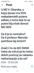 Ne čudi Milovanovićevo razočaranje ovakvom situacijom na terenu, s obzirom da je porijeklom iz Velike Obarske. Još manje čudi, što je u objavi pomenuo SDS-ovog kandidata za predsjednika Srpske, postavljajući mu pitanje, da li podržava takav sistem, jer Branko Blanuša u svakom svom obraćanju poziva na vladavinu prava i poštovanje zakona.