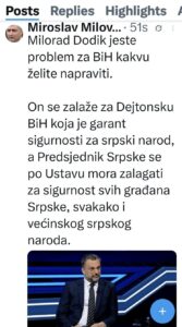 Milovanovićeva objava stoga ne samo da brani Dodika, već i otkriva političku neiskrenost u Konakovićevim izjavama. U stvari, ono što Konaković smatra “problemom” jeste nepristajanje na redefinisanje BiH bez saglasnosti svih naroda. Upravo je to temelj dejtonske logike.