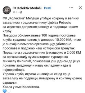 Ovakve tvrdnje posebno dobijaju na težini u trenutku kada se pojavljuju objave pojedinih klubova, poput FK „Kolektiv“ iz Međaša koji se javno zahvaljuju gradonačelniku na hiljadama maraka doniranih sredstava, dok istovremeno brojni drugi klubovi, prema saznanjima portala BijeljinaLive, ne dobijjaju redovne tranše, predviđene godišnjom raspodjelom finansijskih sredstava.