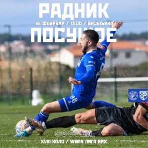 Ekipa trenera Velibora Đurića u subotu, 15. februara, od 13:00 časova dočekuje ekipu HSK Posušje na Gradskom stadionu u Bijeljini.