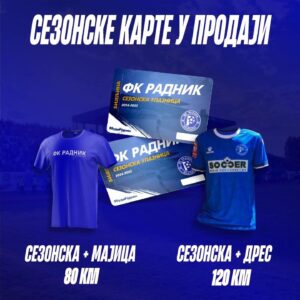 – Sezonska + dres Radnika za sezonu 24/25 sa štampom po želji 120KM