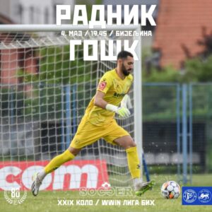 U nedjelju, 4. maja s početkom u 19:45 na Gradskom stadionu u Bijeljini, Radnik dočekuje ekipu Goška iz Gabele u utakmici 29. kola WWIN lige Bosne i Hercegovine.