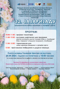 Povodom najvećeg hrišćanskog praznika Vaskrsa, JU Centar za kulturu „Semberija“, u saradnji sa SKUD-om „Semberija“, Gradskim pozorištem „Semberija“, Humanitarnom organizacijom „Srbi za Srbe“ i Turističkom organizacijom Grada Bijeljina, tradicionalno organizuje 32. „Jajarijadu“, tradicionalni izbor najljepšeg i najtvrđeg jajeta.