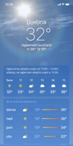 Bijeljina, kako pokazuje aplikacija sa mobilnog telefona već u 10.30 časova pokazuje da je temperatura 32 stepena Celzijusa. Ista aplikacija pokazuje da će i narednih dana biti vrlo toplo i sparno vrijeme. Bijeljinci subotu obično koriste da se opskrbe potrebštinama za narednu sedmicu, odnosno obave kupovinu. Međutim, grad je jutros skoro pust. Čak su i bašte lokala prazne. Nikome se ne izlazi na vreli asfalt.