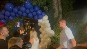 On je na proslavu stigao u društvu supruge Natalije, kao i brata.
