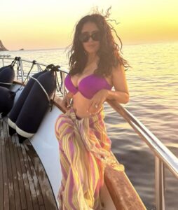 Tako je nedavno objavila par atraktivnih fotografija u ljubičastom bikiniju, a znatiželjne poglede privukla je, naravno, svojim bujnim grudima.
