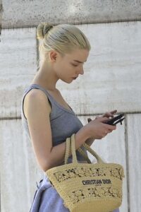 Na Beverli Hilsu. Anja je bila u širokom plavom šortsu, običnoj majici na bretele, imala je papuče i duks vezan oko struka, a ponela je i pletenu „dior“ tašnu. Plavu kosu je vezala u opuštenu punđu, i ovako se obukla jer je krenula u spa.