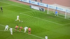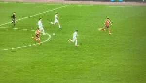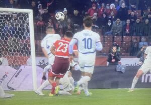 U 70.minutu, Živković šalje sjajan pas u prostor za Vlahovića, koji pokušava iskosa sa desne strane lijevom nogom ali njegova parabola završava tik iznad prečke.