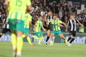 Sjajnu šansu potom za AEK propušta bivši igrač Partizana Đorđe Ivanović kada pogađa stativu u 82.minutu.
