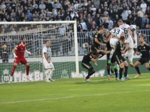 Crno-beli su imali loptu u posedu, u začetku napada, ali je kadrinalno pogrešio onaj od koga se to najmanje očekuje – Bibars Natho. Izgubio je loptu, omogućio ekspresnu tranziciju preko Tufegdžića, koji je uposlio sjajnog Mihajla Cvetkovića, a talentovani napadač rutinski matirao Jovanovića – 0:1. Stepen očaja koji nije mogala da potisne ni gromoglasna podrška sa tribina.