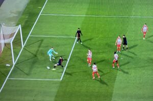 Međutim, iako je trpila pritisak, Zvezda je pokušavala da iznese loptu na polovinu gostiju. Uspjela je u 27.minutu.