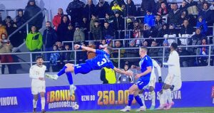 Samo 4 minuta kadnije preokret. Prelijepa akcija, Mimović je centrirao, a Mitrović je sigurnim skokom i udarcem glavom došao do gola.