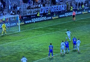 Sallai u 38. minuti šutira poerd gola, a onda šok , pošto je Dominik Soboslai iskosa s lijeve strane matirao Vasilja, a golu je prethodila greška našeg veznog reda.