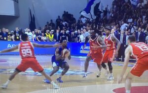 Usledio je minut totalne drame. Budućnost dolazi do poena za 77:75. Mekinli Rajt gubi Loptu, Zvezda ima napad za vođstvo, ali Kenan šalje neverovatan pas, greši i Budućnost ima napad. Zvezda potom pravi faul, a Mekinli rajt ne koristi prvo, ali pogađa drugo. Trener Zvezde Janis Sferopulos traži tajm-aut.