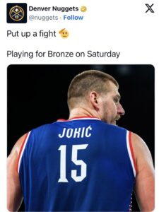 „Bori se. U subotu se igra za bronzu“, napisali su Nagetsi uz fotografiju Nikole u dresu Srbije.