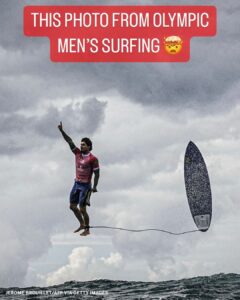 Brazilac je porazio Kanou Igarašija 17.40 prema 7.04 u okršaju grupne faze, a na samom kraju nadmetanja talas ga je zbacio i on je zauzeo takvu pozu da se stiče utisak kao da lagano stoji u vazduhu.