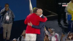 Nosio je dugo baklju Rafael Nadal potom, onda ju je predavao dalje, a na kraju su plamen upalile legende francuskog sporta – Tedi Rine i Mari Žoze Pere.