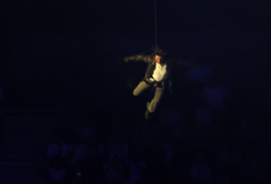 Tom Kruz je skočio s krova nacionalnog stadiona u Parizu u sklopu finalnog dijela ceremonije zatvaranja Olimpijskih igara i predaje zastave sljedećem domaćinu – Los Angelesu.