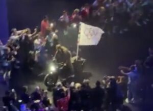 Preuzeo je olimpijsku zastavu i na motoru napustio stadion kako bi je prenio do Los Angelesa gdje će se održati narednje Ljetne olimpijske igre 2028. godine.