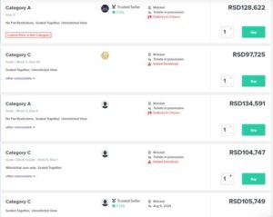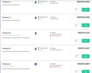 Najjeftinije ulaznice na sajtovima za preprodavanje karata, mogu se naći za oko 84.000 dinara,(710 evra) dok su gotovo sve ostale, za nešto bolje pozicije, preko 100.000 dinara.