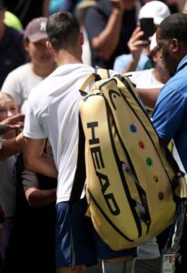Nole je na trening stigao sa stilom i u posebnom, dosad neviđenom izdanju, jer je imao zlatnu torbu u kojoj je nosio rekete i opremu.