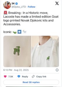 Francuski modni brend „Lakost“ zamenio je čuveni logo krokodila za kozu u čast Novaka Đokovića, najboljeg srpskog tenisera.