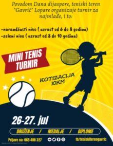 Teniski teren „Gavrić“ će po prvi put da organizuje turnir za mališane. Pored rekreativnog turnira koji se organizuje već 14 godina, od ove godine će biti upriličen i mini teniski turnir za najmlađe.