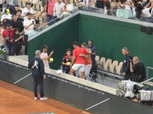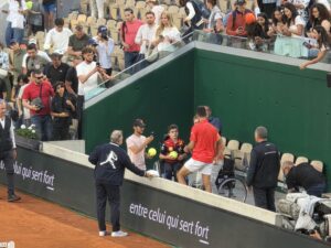 Nije mu prvi put da dijeli autograme, da se slika sa navijačima. Ali ovog puta je čak morao da preskoči ogradu. To je uradio iz najboljeg mogućeg razloga. Želio je da se slika sa dvojicom momaka u kolicima koji su imali posebno mjesto na stadionu „Suzan Lenglen“. Preskočio je ogradu i na trenutak pobjegao čak i obezbjeđenju koje ga je pratilo u stopu. Ništa nije bilo bitnije od toga.