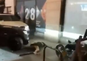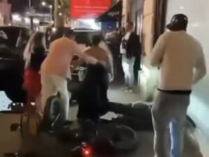 U međuvremenu, jedan muškarac – za koga se veruje da je pokušavao da otključa električni trotinet – takođe se našao u haosu i bio odbačen u stranu.