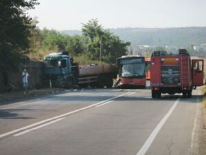 U saobraćajnoj nezgodi do koje je došlo između kamiona i autobusa na Novom obrenovačkom drumu jedno lice, putnik iz autobusa, je preminulo, dok je 13 putnika zadobilo lake, a 5 teške telesne povrede i svima je pružena odgovarajuća medicinska pomoć.