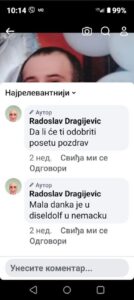 “Razočarani smo svi veoma. Ne znamo šta da mislimo, sumnjamo u sve što nam je do sada rečeno, jer se ispostavlja vremenom da dokaza nema. Ja sam počeo da verujem, odnosno, da se nadam, da je Danka ipak negde i da je živa. Daj Bože da su je predali nekome, a ne ubili. Ono što je u nama probudilo dodatnu sumnju u to je objava koja se pojavila na profilu koji je navodno od Radoslava Dragijevića, oca od Dejana, a napisao je da je moja unuka u Dizeldorfu u Nemačkoj”, rekao je on za Telegraf.