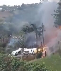 Brazilska televizijska mreža GloboNevs prikazala je snimak velike površine u plamenu i dimu koji izlazi iz očiglednog trupa aviona u stambenoj četvrti punoj kuća.