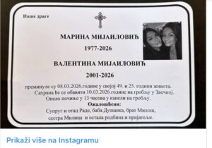 Danas se na njegovom Instagram profilu pojavila čitulja u kojoj je objavljeno tačno vreme sahrana Marine i Valentine.