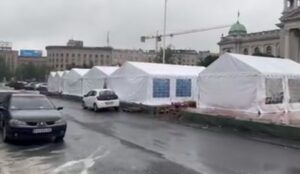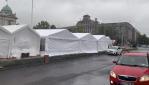 Mnogo duhovitih reakcija na „šatore koji žele da lete“ bilo je i juče, a danas je priroda očistila i ono što je preostalo od tzv. Ćacilenda postavljenog ispred Skupštine Srbije.