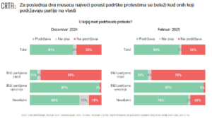 „Umesto bijesa, straha i zabrinutosti, među građanima sada preovladavaju nada i optimizam, i to upravo zahvaljujući protestima i studentima. Studentske proteste podržava 64 odsto građana, a najveći rast podrške u posljednjih mjesec dana bilježi se među onima koji inače podržavaju partije na vlasti. Sada svaki peti građanin kojem su bliže partije vlasti podržava proteste, a krajem decembra bilo ih je upola manje“, dodaje se.