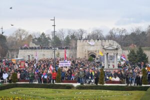 „Studenti univerziteta u toj balkanskoj zemlji kojom je već više od decenije čvrsto vladala populistička vlast, održavaju proteste širom zemlje od kobnog urušavanja nadstrešnice na železničkoj stanici (u Novom Sadu) u novembru kada je poginulo 15 ljudi, a kritičari za to okrivljuju korupciju u vlasti“, piše AP.