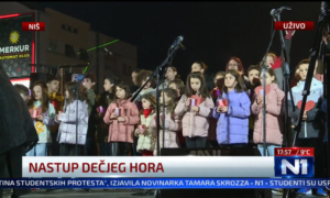 Dečiji hor otpevao je pesmu „Vatra u mraku“ Marčela i Marka Luisa, koja važi za nezvaničnu himnu studentskih protesta i blokada. Nakon toga hor je pevao pesmu „Zemlja“.