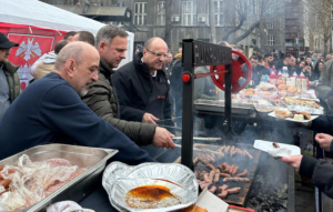 Na protestu u Nišu hranu za građane pripremaju i pojedini poslanici, poput Miroslava Aleksića i Borislava Novakovića.