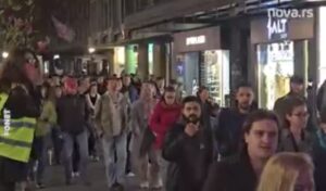 Ulica Laze Telečkog je ispunjena demonstrantima koji poručuju da „večeras nema žurke, večeras samo buka“.