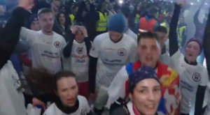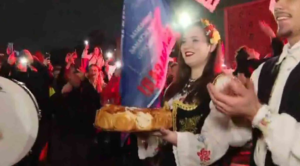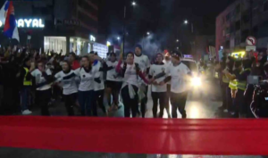 Dok su prevaljivali poslednje metre do centra, građani su im osvetljavali put svetlima telefona, klicali im, a sve vreme su se čuli bubnjevi.