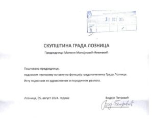 Kako je naveo u obražloženju predsjednici Skupštine opštine Loznica, Mileni Manojlović-Knežević ostavku podnosi iz zdravstvenih i porodičnih razloga. Datum na dokumentu ostavke, koji je Danas dobio, je 5. avgust.