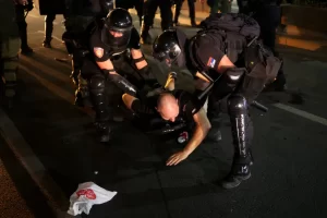 Asistent N1 Jovan Pavlović je povređen u neredima koji su izbili posle zvaničnog završetka večerašnjeg Vidovdanskog protesta, kada su ga policajci oborili na zemlju.